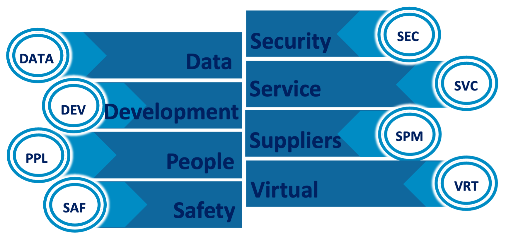A suíte de produtos envolve modelos de maturidade, método de avaliação, instruções e materiais de apoio para adoção, sistemas e ferramentas, além de programas de treinamento e certificação profissional.
